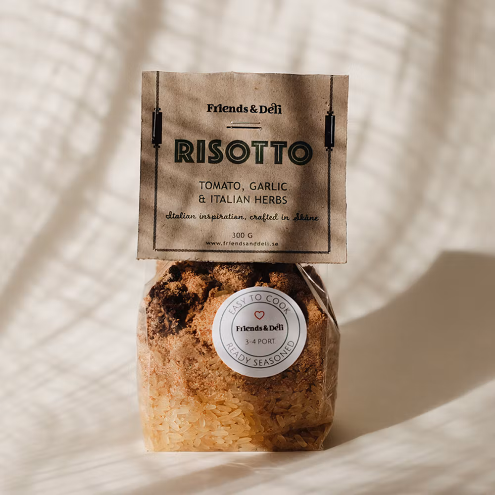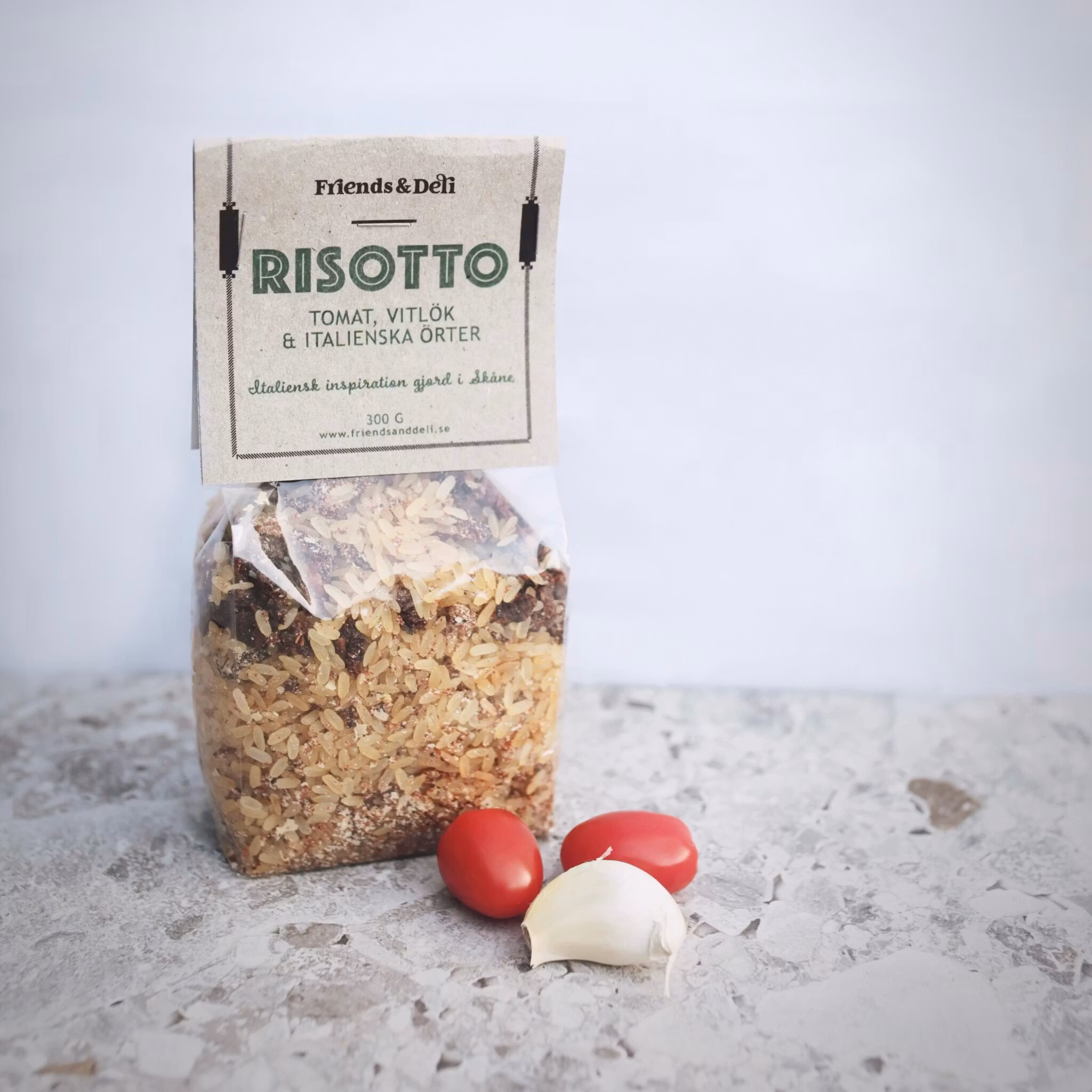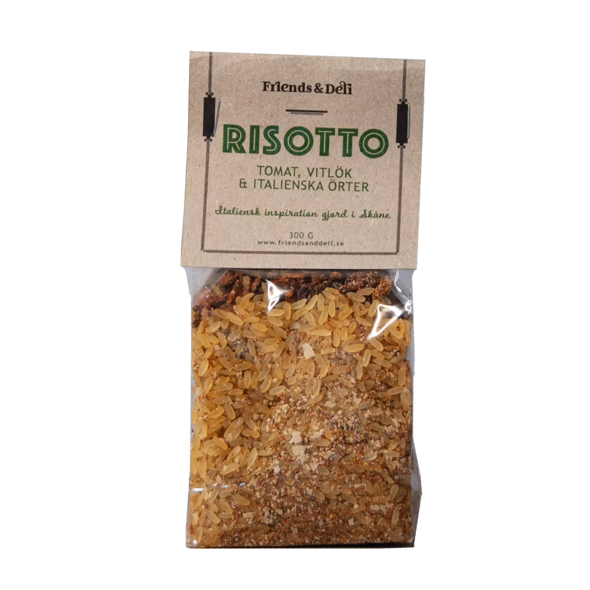 En lättlagad och redan smaksatt risotto med Italiens underbara smaker från ljuvligt söta tomater, vitlök och klassiska gröna örter. Passar som den är både som förrätt och varmrätt, eller som tillbehör till ljust kött som kalv och kyckling, till ugnsbakad lax och örtstekta grönsaker.